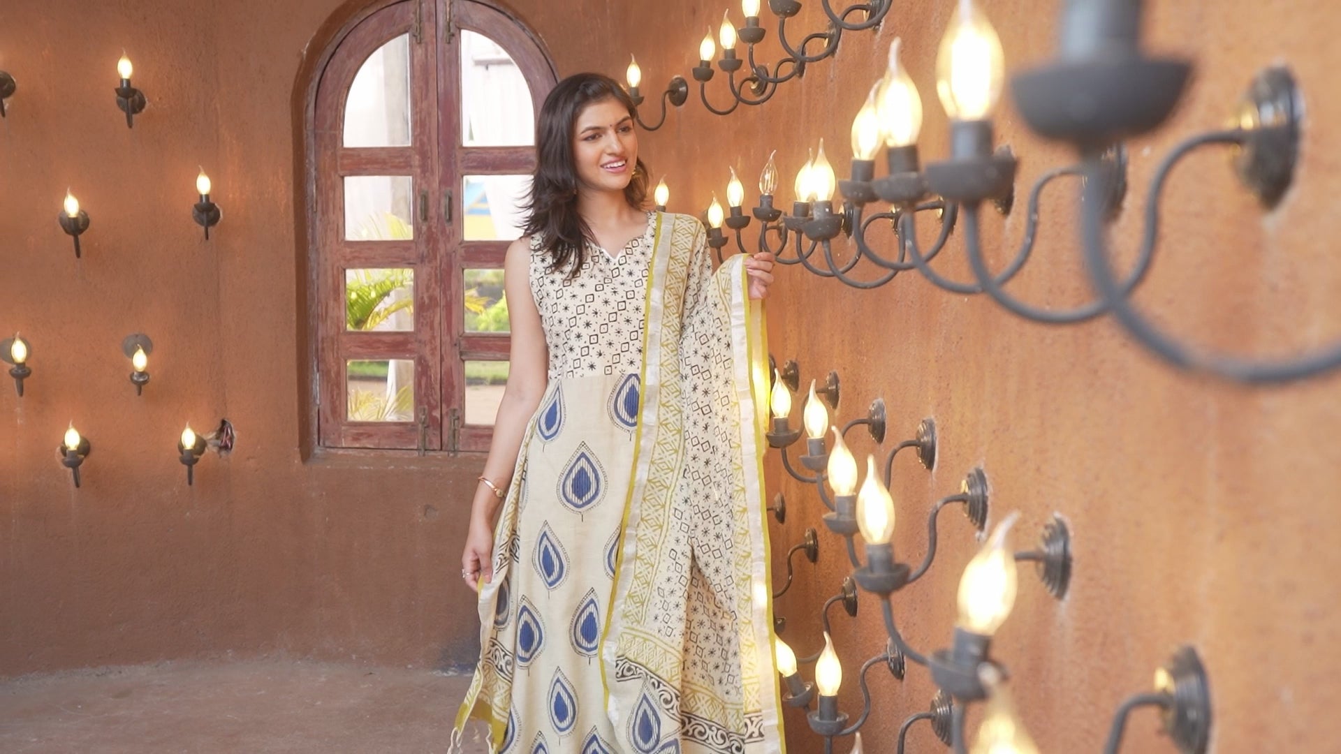 Components: Alia cut Linen Cotton Block print Kurta set |