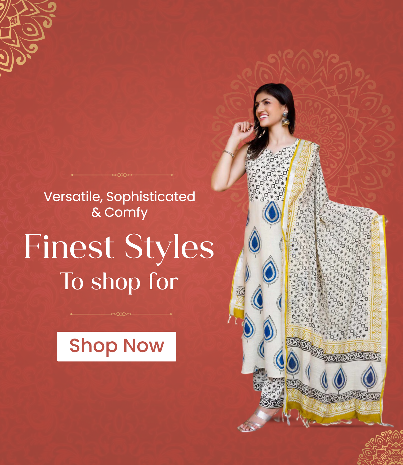 Components: Alia cut Linen Cotton Block print Kurta set |